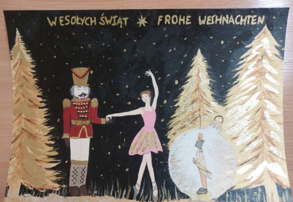 Kartka świąteczna Maksymiliana L. z kl. 6c DSD w wigilijnym „okienku” kalendarza adwentowego Konsulatu Generalnego Niemiec we Wrocławiu!