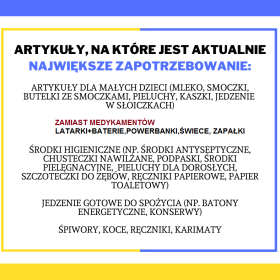 Jako Społeczność SP 34 chcemy włączyć się w pomoc zaatakowanej Ukrainie. Po konsultacji z Punktem Informacyjnym dla Cudzoziemców w Kielcach publikujemy listę najpotrzebniejszych na dzień dzisiejszy artykułów.