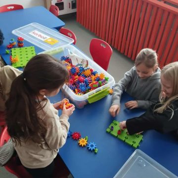 Uczniowie z klasy 2c wykorzystują klocki KORBO Edu zakupione w ramach Programu ...