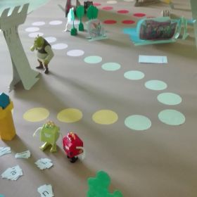 Która drużyna pierwsza pokona bajkową planszę, odpowie prawidłowo na pytania, rozwiąże zagadki Detektywa Bajek i uzyska prawo otworzenia drzwi do Krainy Baśni?