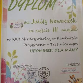 Miło nam poinformować, że uczennica naszej szkoły- Julita Nowaczek z klasy IIb zajęła zaszczytne III miejsce.