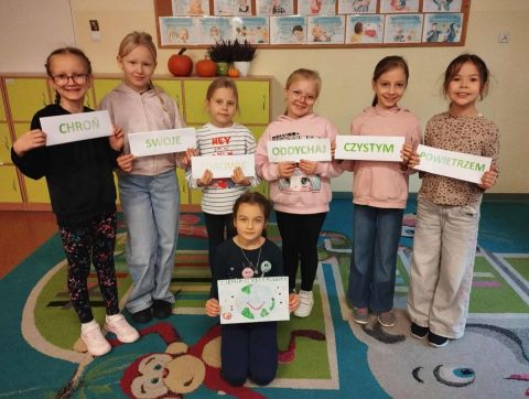 W listopadzie uczniowie klasy 2c oraz 3a wzięli udział w Akcji Konkursowej Urzędu Miasta pn. ,,Chroń swoje zdrowie - oddychaj czystym powietrzem”, której głównym celem było uświadomienie dzieciom znaczenia czystego powietrza dla zdrowia oraz zwrócenie uwagi na problem zanieczyszczenia środowiska.