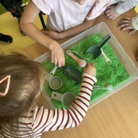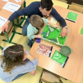 Dla najmłodszych przygotowano wiele atrakcji – zabawki wykonane z recyclingu, salę tematyczną poświęconą dinozaurom, w której można się było poczuć jak w prehistorycznym świecie, zabawki sensoryczne, tor przeszkód w holu przedszkola.