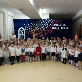 11 listopada to szczególna data w historii naszego kraju. Z tej okazji dzieci z naszego przedszkola wzięły udział w ogólnopolskiej akcji „Szkoła do Hymnu”. Punktualnie o godzinie 11:11 wszystkie grupy zgromadziły się, aby z dumą i powagą odśpiewać Mazurka Dąbrowskiego. Wspólne śpiewanie hymnu było dla przedszkolaków ważnym i wzruszającym przeżyciem, które pomogło im lepiej zrozumieć znaczenie takich wartości jak wolność, ojczyzna i patriotyzm.