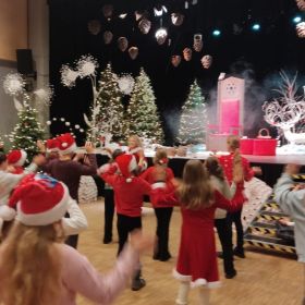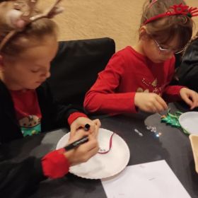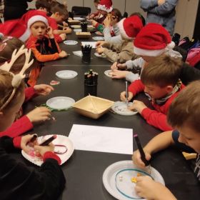 Pierwszym punktem programu były warsztaty tworzenia drewnianej ozdoby choinkowej. Pod okiem Śnieżynek uczniowie z wielkim zaangażowaniem tworzyli niepowtarzane dekoracje, które zabrali ze sobą do domów, aby zawiesić je na rodzinnych choinkach jako pamiątkę z wycieczki. Kolejną atrakcją były zaprzęgi reniferów, w których uczniowie podzieleni na ośmioosobowe grupy wykonywali pełne energii i radości tańce i wyścigi, bawiąc się przy tym wyśmienicie. Najbardziej oczekiwanym momentem było oczywiście spotkanie ze Świętym Mikołajem, którego dzieci przywitały z ogromnym entuzjazmem. Z Jego rąk dzieci otrzymały prezenty.