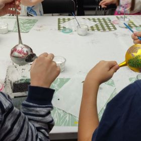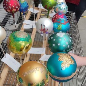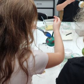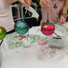 Dużą atrakcją wycieczki były warsztaty plastyczne, podczas których dzieci mogły ozdobić według własnego pomysłu szklaną bombkę. Ta własnoręcznie udekorowana ozdoba stanie się wspaniałą pamiątką na lata.