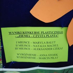 W ramach akcji „Sprzątanie Świata 2025”, Szkolne Koło Ligi Ochrony Przyrody klas młodszych zaprosiło uczniów klas 0 – III do udziału w konkursie plastycznym pn. „ZIEMIA – CZYSTA PLANETA”. Dzieci wykonały piękne i pomysłowe prace, które były zaprezentowane na wystawie pokonkursowej. Jury konkursowe doceniło wszystkich uczniów przydzielając nagrody i wyróżnienia. Za udział w konkursie serdecznie dziękujemy i gratulujemy uczestnikom wyobraźni i pomysłowości.